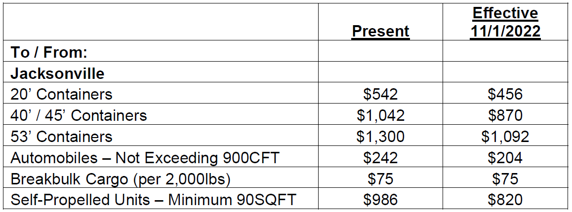 After reviewing the costs of our delivered LNG, TOTE Maritime will be adjusting our tariff as follows based on date of vessel departure: